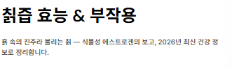 | 적정 복용량 | 하루 1~2포 이내가 적당합니다. (간 손상 방지) |