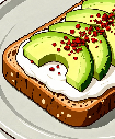 - 재료: 호밀빵 1장, 아보카도 1/2개, 크림치즈(선택), 크러쉬드 레드페퍼(또는 고춧가루 약간)