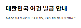 - 방법: 정부24 홈페이지 또는 앱 접속 → '여권 재발급' 검색