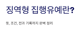 - 핵심 요약: 3년 이하 징역형에 대해 최장 5년까지 집행을 미루는 제도이며, 기간 내 재범 시 기존 형량까지 더해 실형을 살게 됨.
