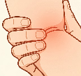 - 방법: 아픈 부위의 힘줄 방향과 직각(가로 방향)으로 검지와 중지를 이용해 문질러줍니다.