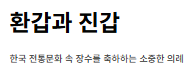- 풍습: 환갑 때 사정상 잔치를 크게 열지 못했거나, 환갑을 무사히 넘긴 것을 다시 한번 기념하고 싶을 때 진갑 잔치를 열기도 합니다.
