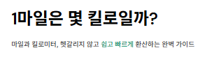 | 마일(mile) | 킬로미터(km) 환산 (약) | 실생활 체감 예시 |