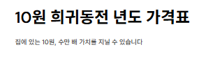2. 10원 희귀동전 년도 가격표 (최신 시세 기준)