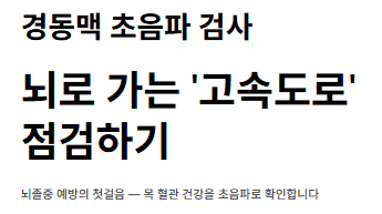 - 증상: 갑작스러운 시야 장애, 마비, 언어 장애가 생겼다 사라진 경우, 경동맥에 문제가 있는지 확인하여 실제 뇌졸중으로 번지는 것을 막습니다.