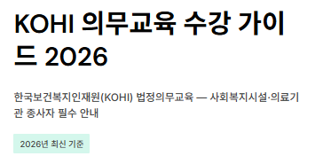 한국보건복지인재원(KOHI)은 보건복지 분야 종사자들이 법적으로 이수해야 하는 법정의무교육과 보수교육을 전담하는 기관입니다. 2026년 기준, 사회복지시설 및 의료기관 종사자라면 반드시 확인해야 할 수강 정보입니다.