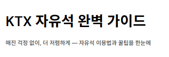 - KTX 자유석이란 평일 특정 객차를 지정석 없이 선착순으로 이용하는 좌석입니다.